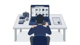 古物商許可の申請書類と電卓をデスクで確認している人物のイラスト 古物商許可コラム