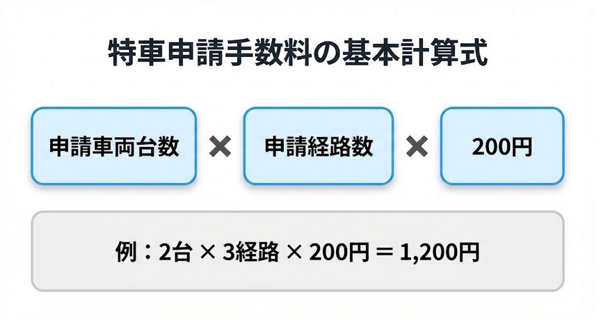 特車申請の手数料は、原則として「1台・1経路につき200円」という計算式で成り立っていますが、「往復の数え方」や「道路管理者の区分」といった特有のルールが存在します。