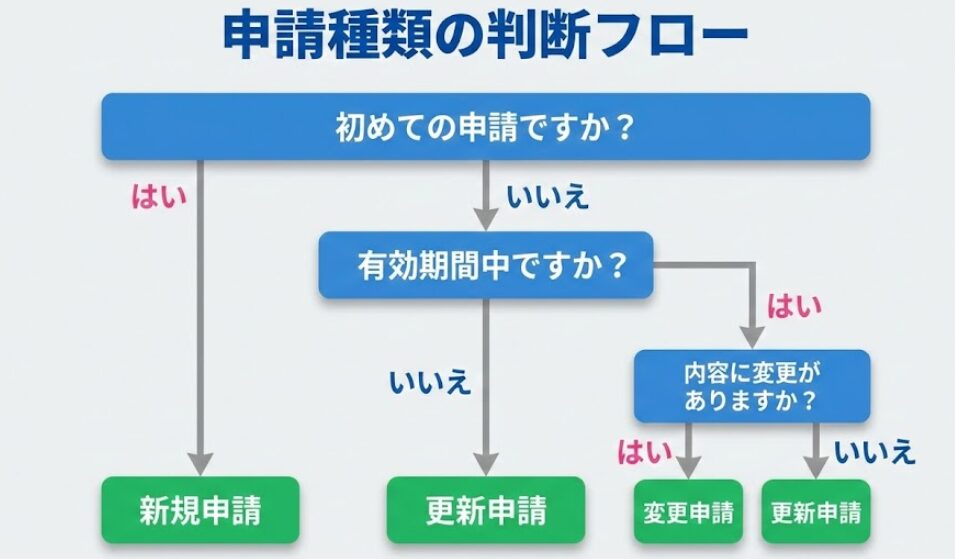 | 期間延長のみ(内容は一切変更なし) | 更新申請 |