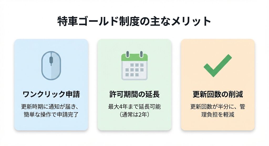 複数の許可証を管理し、すべての更新期限を把握するのは容易ではありません。そこで活用したいのが、特車ゴールド制度です。