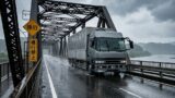 重量D条件はさらに厳しく、対向車線を含む一の径間(約60m)に他車がいない状態で渡ります。対向車を止めるか通過を待つ誘導体制が必要になるため、夜間(21時〜翌6時)に指定されるのが通常。